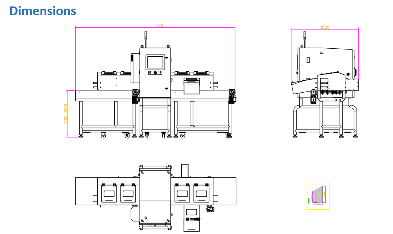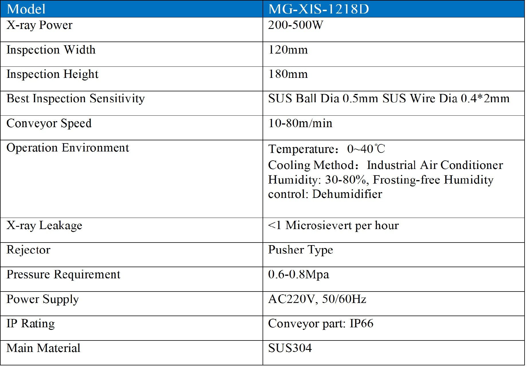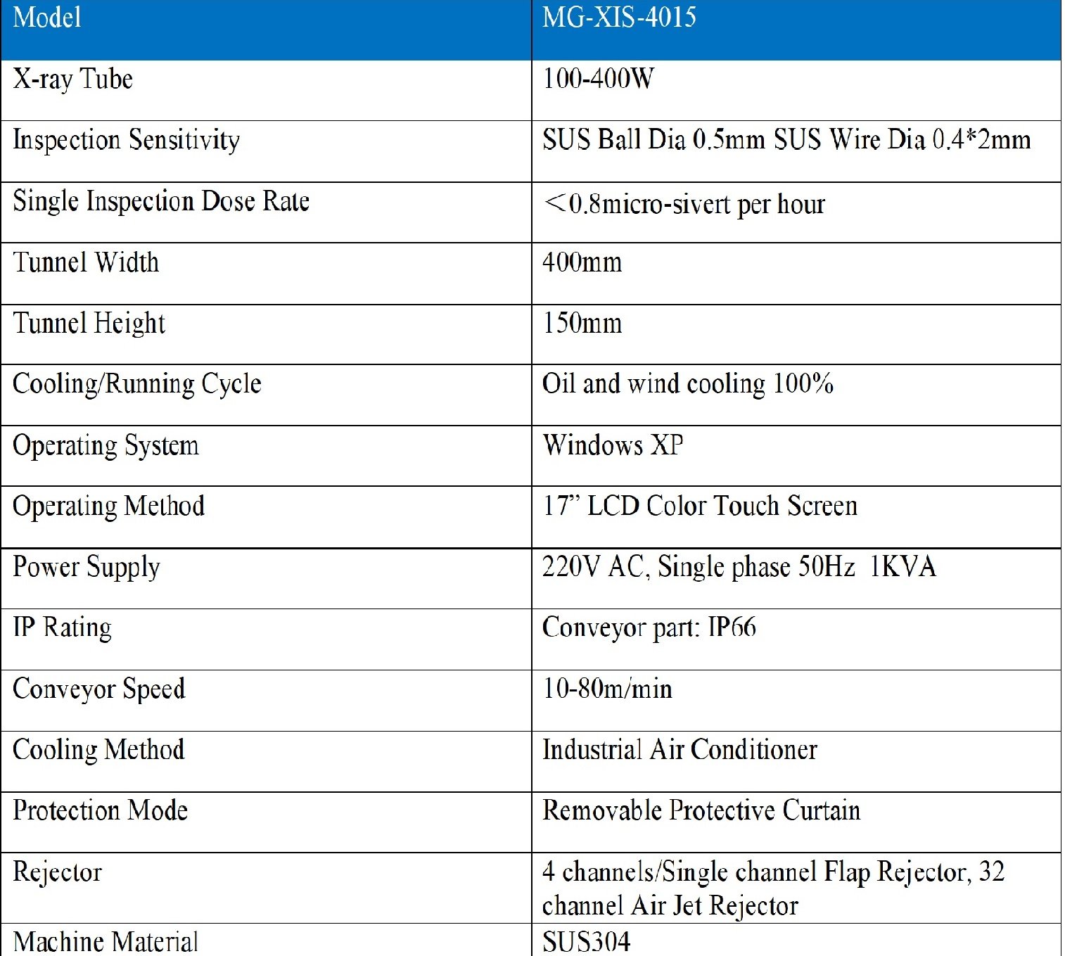 Fanchi Dual-beam x-ray system is specially designed for the complicated detection of glass particles in glass or plastic or metal containers. It also detects unwanted foreign objects such as metal, stones, ceramics or plastic with high density in the product. The FA-XIS1625D devices use a scanning hight up to 280 mm with a straight product tunnel for conveyor speed up to 120m/min.