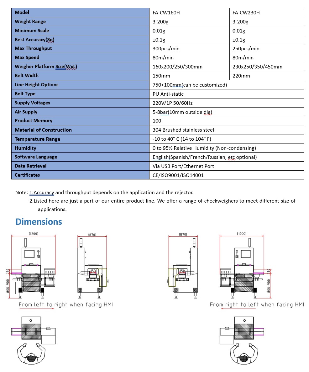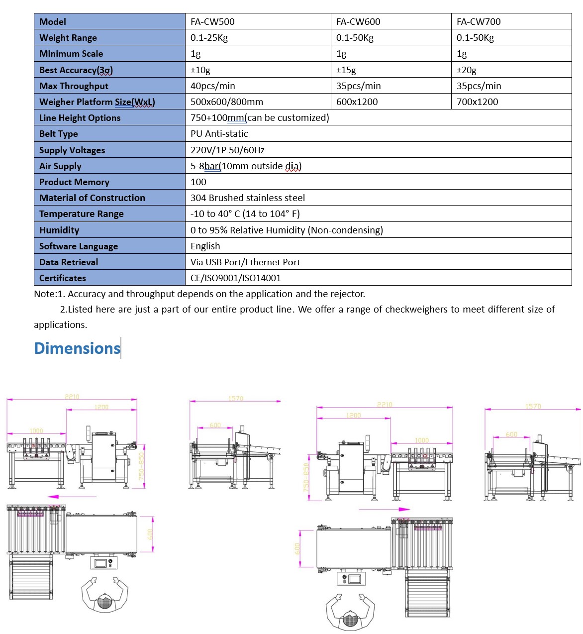 เครื่องชั่งน้ำหนักสายพาน / เครื่องตรวจสอบน้ำหนักบนสายพาน รุ่น FA-CW