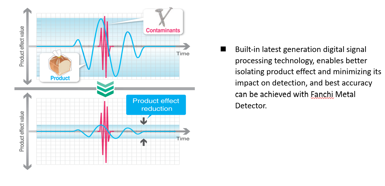 2. เครื่องมีฟังชั่น Auto Learning สำหรับเรียนรู้สินค้าแต่ละชนิด เพื่อการตรวจจับโลหะที่มีประสิทธิภาพที่สุด
