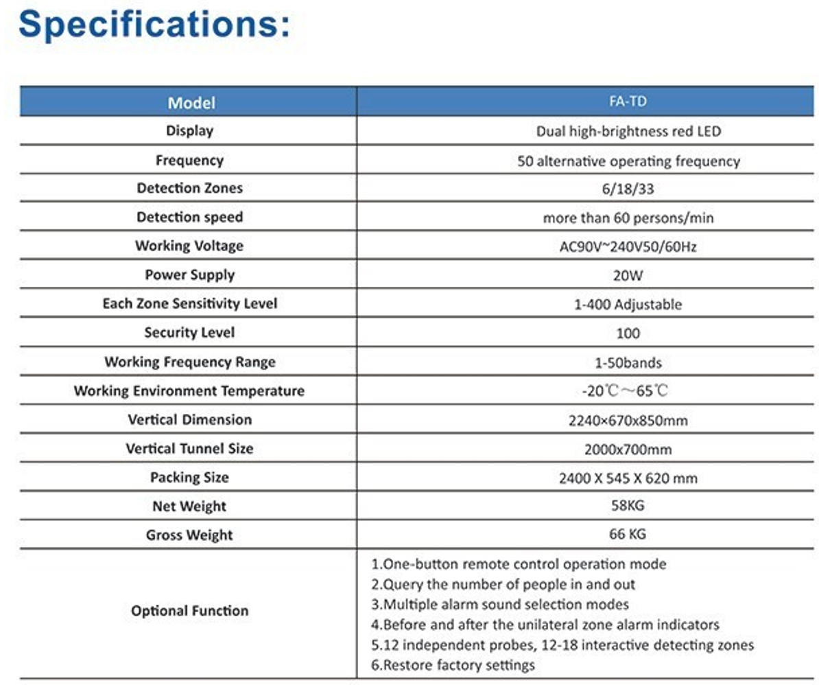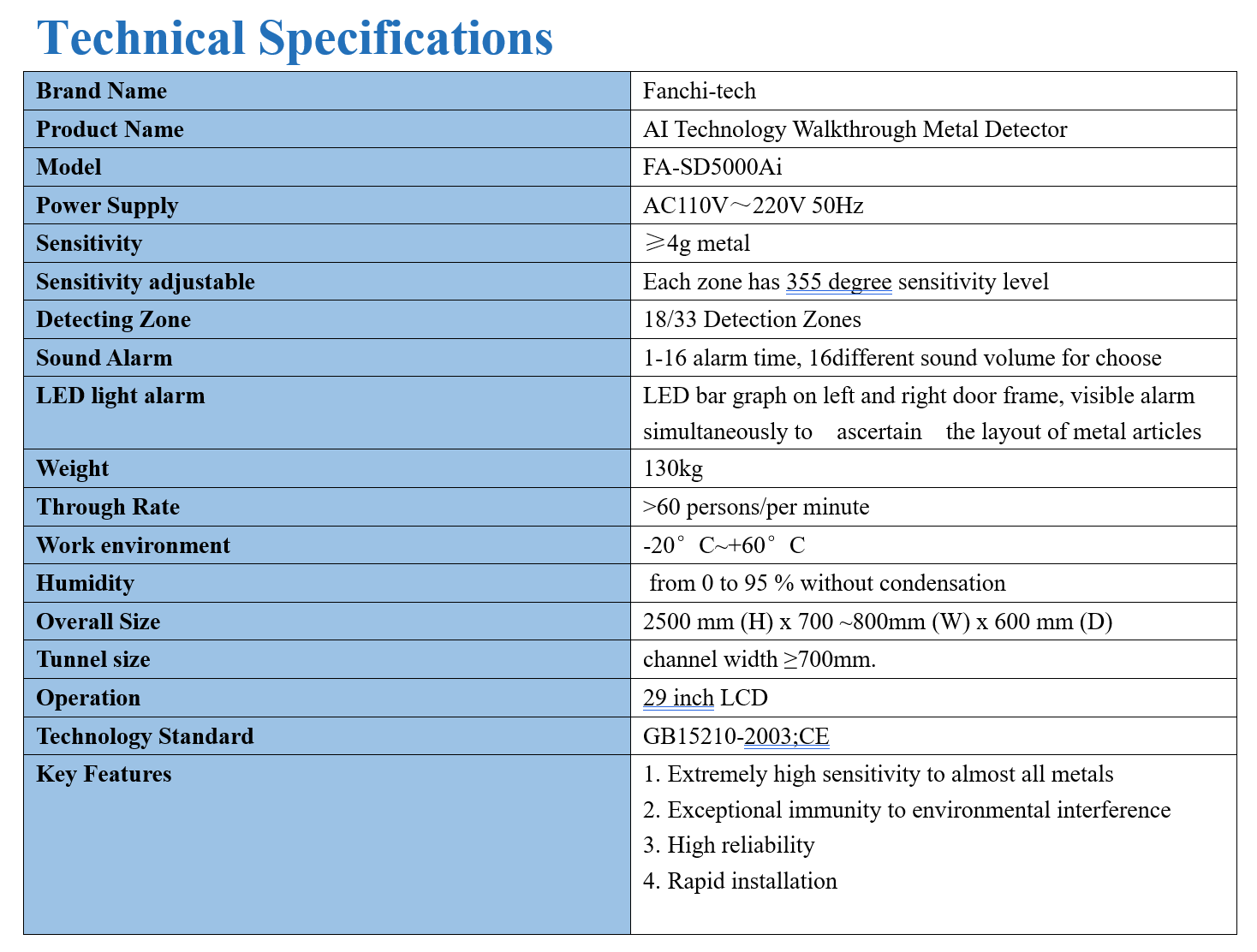 1. Accurate detection and alarm of controlled knives/sharp weapons/blunt weapons, personal belongings while not alarm for keys, watches, and mobile phones; areas like: Public security stations, procuratorates, courts, prisons, high-speed train stations, subway stations, passenger stations, hospitals, museums, memorial halls, libraries, art galleries, science and technology museums, embassies, government agencies, petition offices, arbitration institutions, etc.